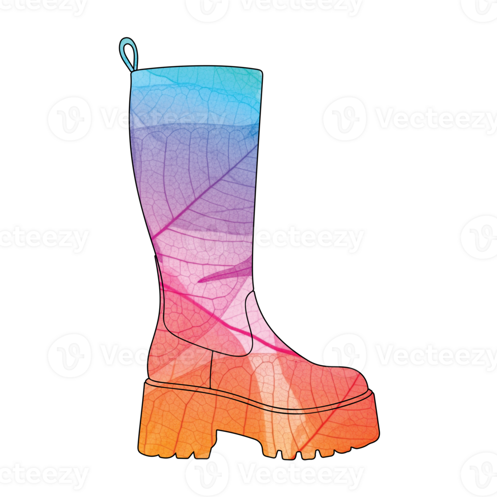 Illustration of a stylish kneehigh boot with a unique leaf pattern and a vibrant gradient, isolated on transparent background, perfect for adding a touch of nature to your outfit Pro PNG