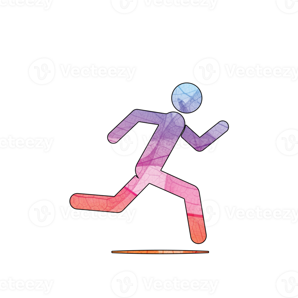 Illustration of a colorful stick figure running isolated on transparent background, showcasing a dynamic pose and vibrant hues, creating a sense of motion and energy Pro PNG