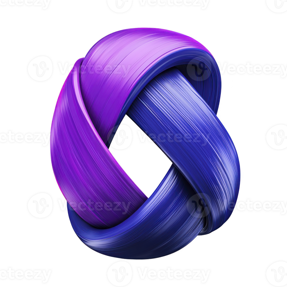vibrant, abstract 3D shape intertwines in shades of purple and blue, creating dynamic and modern design. smooth, ribbon like texture adds depth and movement to composition Pro PNG