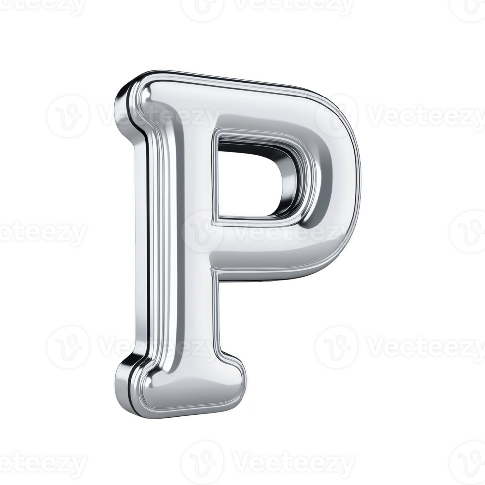 shiny silver metallic letter P with reflective surface and 3D effect, isolated on transparency background. design is sleek and modern, suitable for digital graphics or typography projects Pro PNG