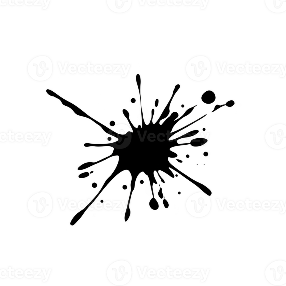 black ink splatter with irregular edges and droplets radiating outward, creating abstract and dynamic design. splatter is set against plain background, emphasizing its bold and artistic appearance Pro PNG