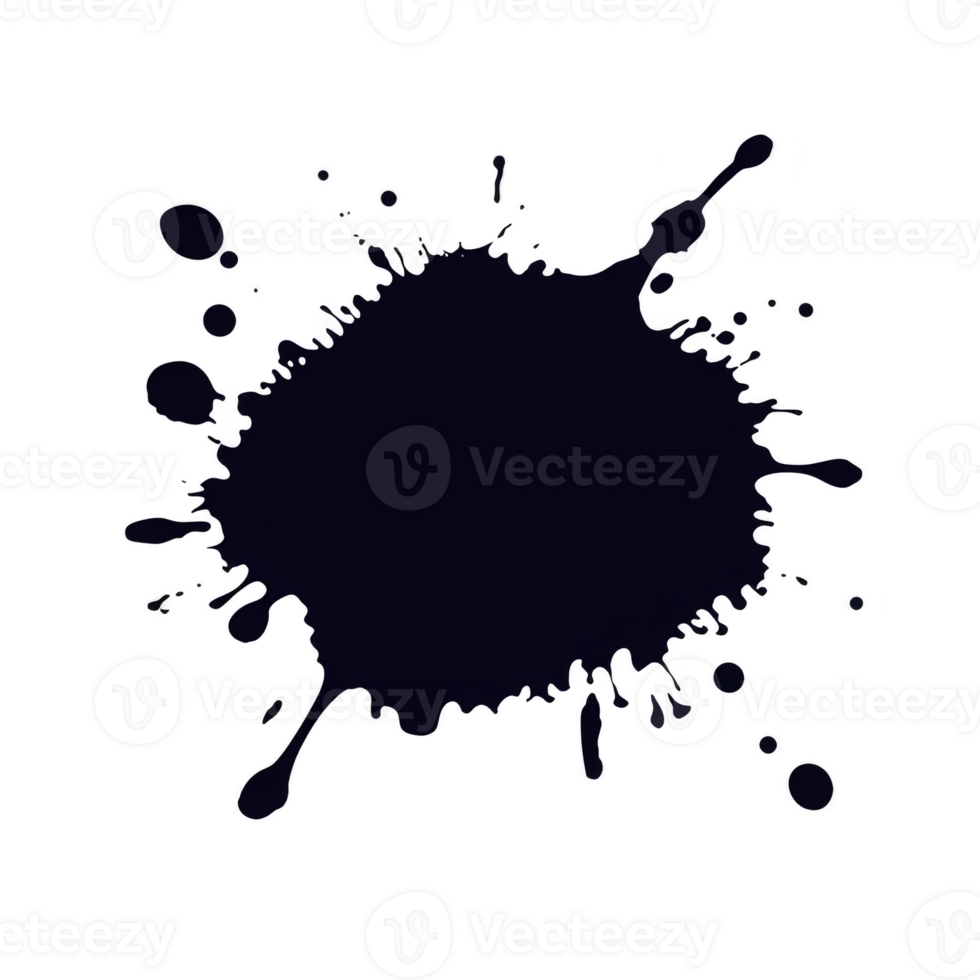black ink splatter with irregular edges and droplets radiating outward, creating dynamic and artistic effect. splatter is set against plain background, emphasizing its bold shape Pro PNG