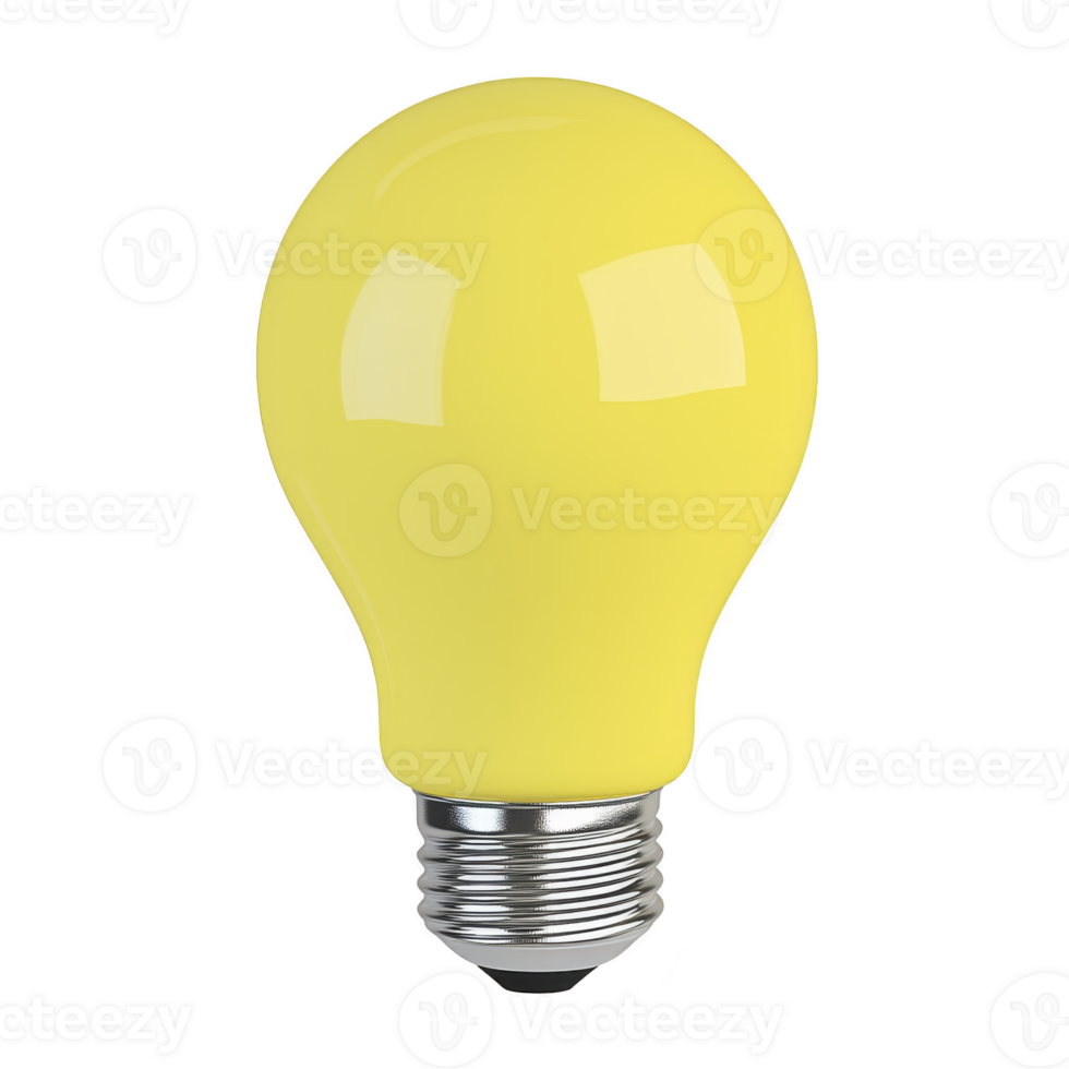 bright yellow light bulb with reflective surface and metallic base, symbolizing creativity and innovation. bulb is isolated on transparency background, emphasizing its vibrant color Pro PNG