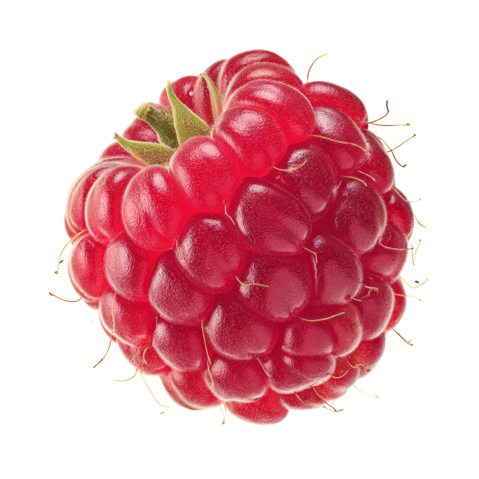 A single ripe raspberry isolated on a transparent background, showing its intricate drupelet structure and bright red color png