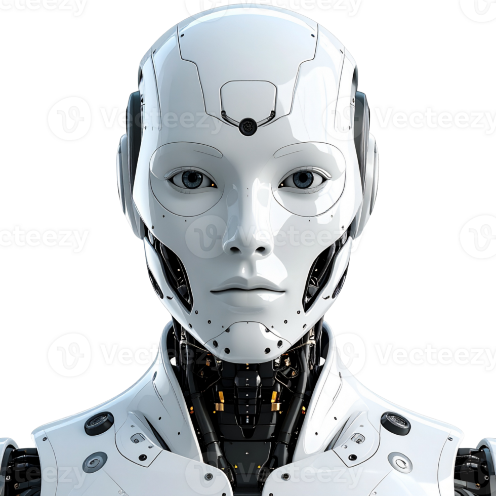 Advanced artificial intelligence android head, a sophisticated humanoid robot showcasing intricate details and the evolution of technology, machine learning, and future innovation Pro PNG