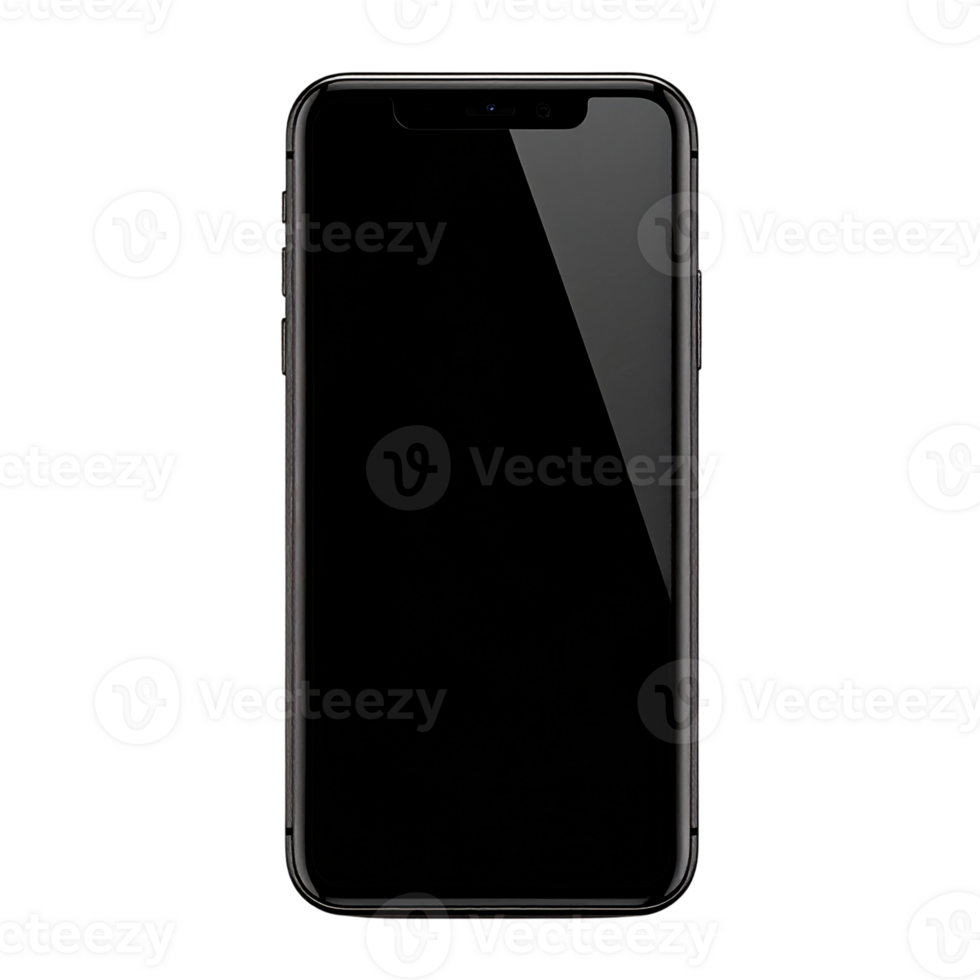 Sleek modern smartphone with a blank black screen, ideal for design mockups, digital display concepts, or mobile technology presentations on a transparent background Pro PNG