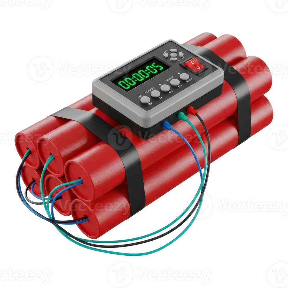 Dynamite sticks with timer isolated on transparent background, ready to explode Pro PNG