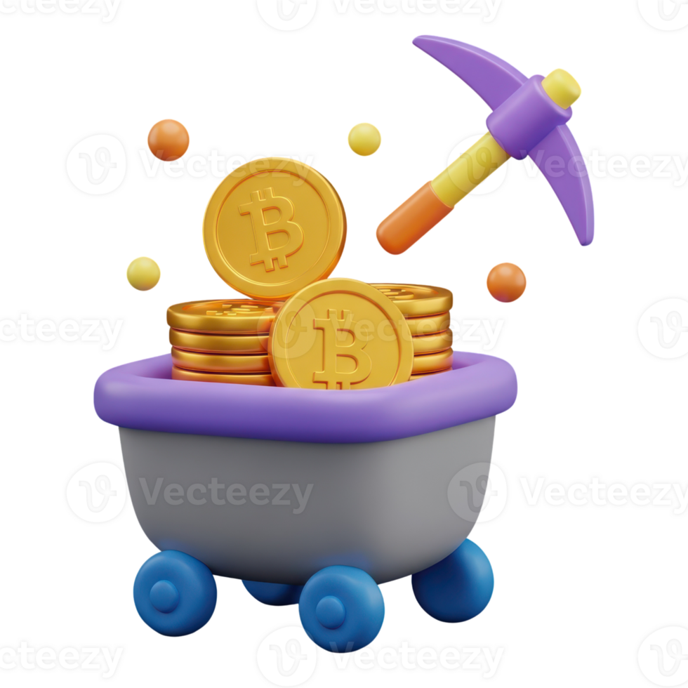 Bitcoin mining cart with pickaxe isolated on transparent background, 3d rendering Pro PNG