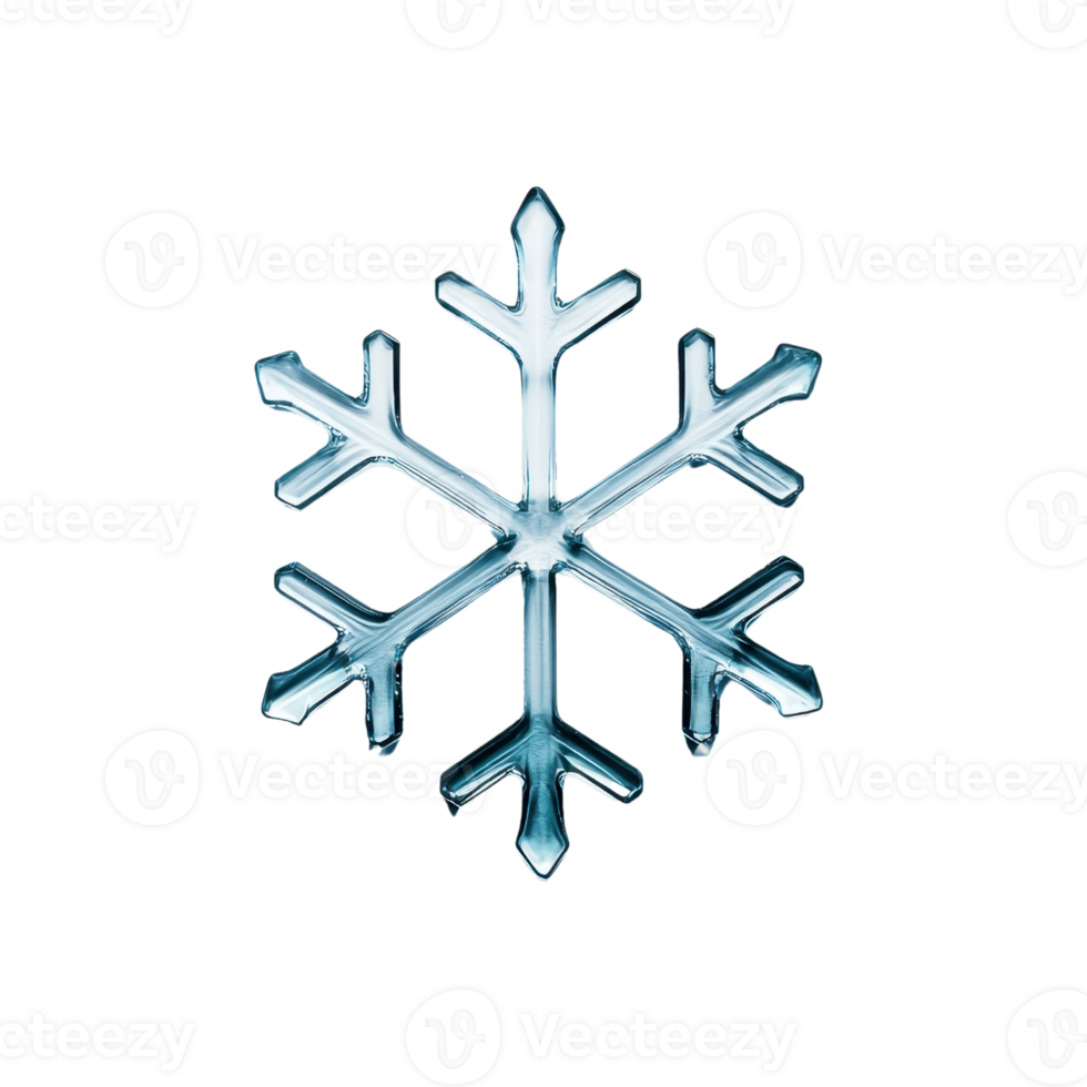 A shiny, translucent snowflake with intricate patterns, symbolizing winter and cold weather, isolated on transparency background Pro PNG