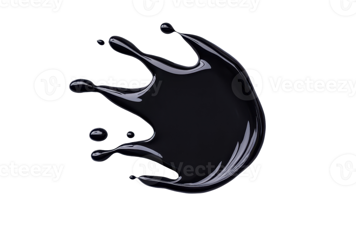 A dynamic splash of dark liquid with glossy reflections, isolated on transparent background, creating sense of movement and fluidity Pro PNG