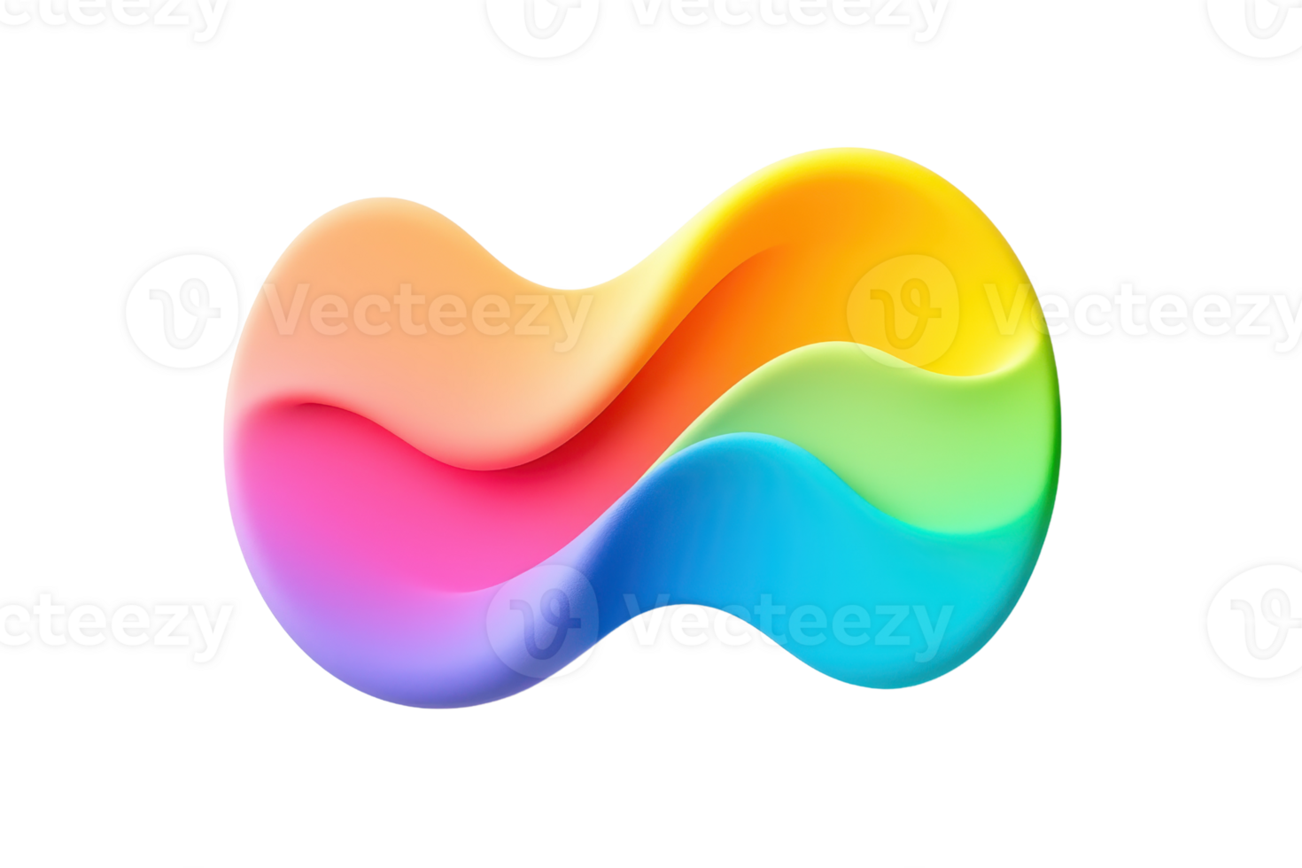 A vibrant, abstract 3D shape with smooth, flowing curves and gradient of rainbow colors, creating dynamic and modern design. glossy surface enhances its visual appeal Pro PNG