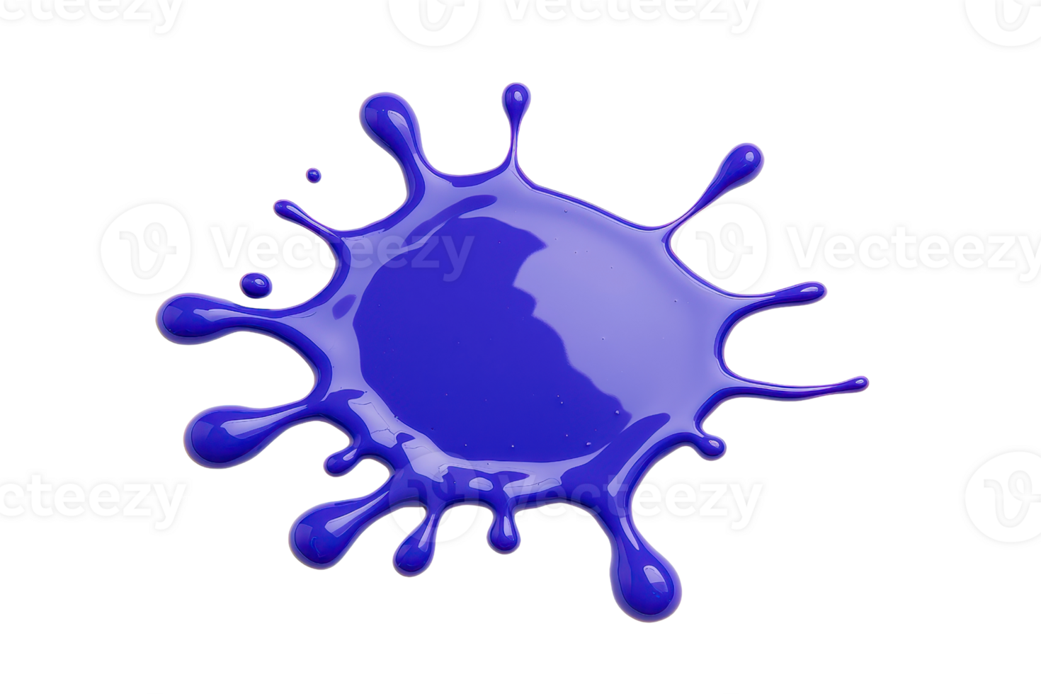 A vibrant splash of blue paint with dynamic droplets and glossy finish, isolated on transparency background. This abstract design is perfect for creative projects and artistic expressions Pro PNG