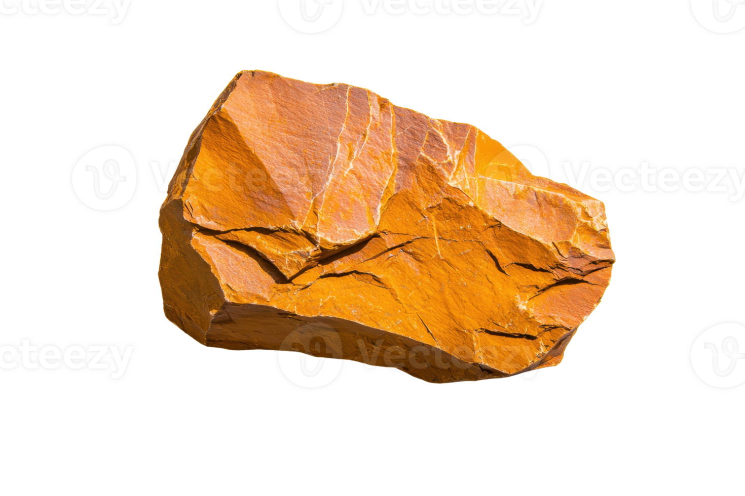 A vibrant orange rock with distinct textures and natural patterns, isolated on transparency background, showcasing its rugged surface and unique geological features Pro PNG