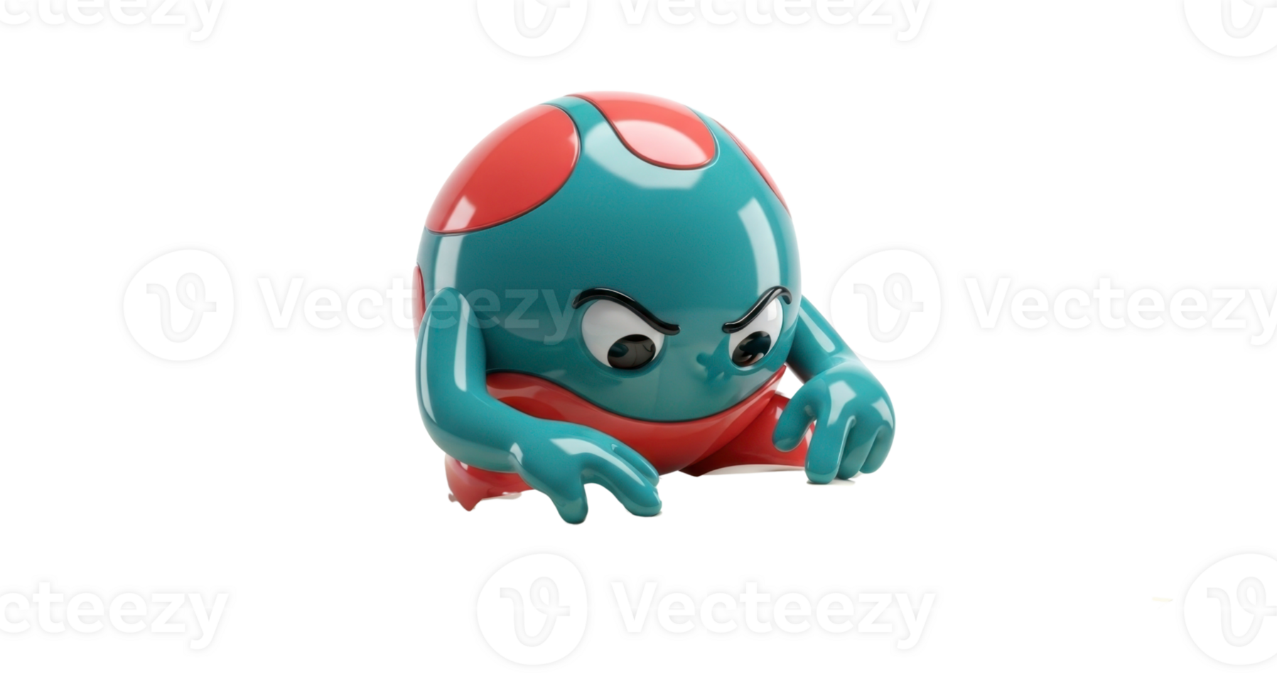 Vibrant 3D cartoon character with an angry and determined expression, rendered in teal and red, depicted in a dynamic crouching pose, suitable for game design or animation Pro PNG