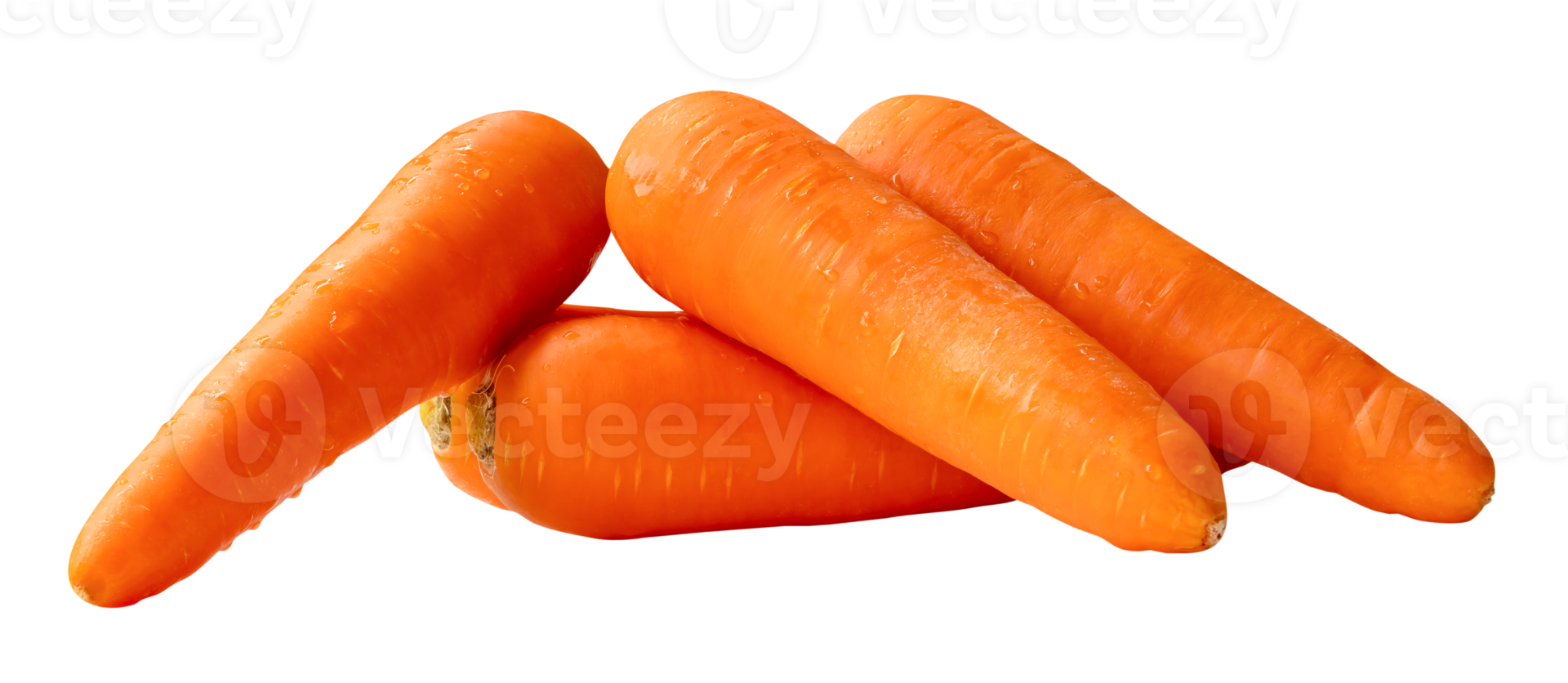 Five carrot roots in stack isolated with clipping path in file format Pro PNG