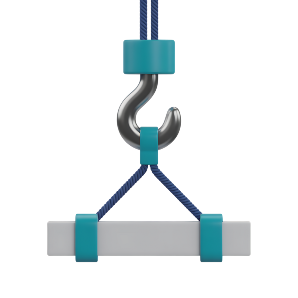 3D render of a crane hook lifting a blank rectangular block. Concept of innovation, potential, and progress. png
