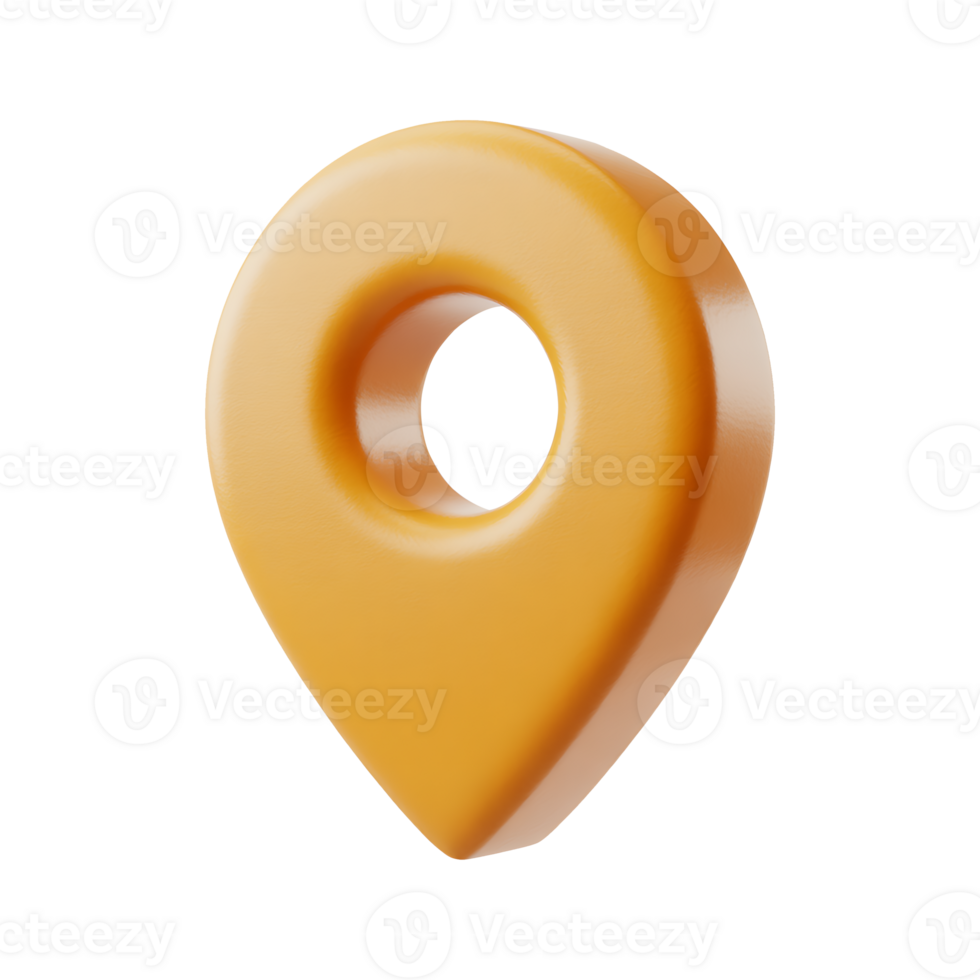 Golden Yellow Location Pin Map Marker Icon 3D Render Navigation GPS Pointer Symbol Concept Design Pro PNG