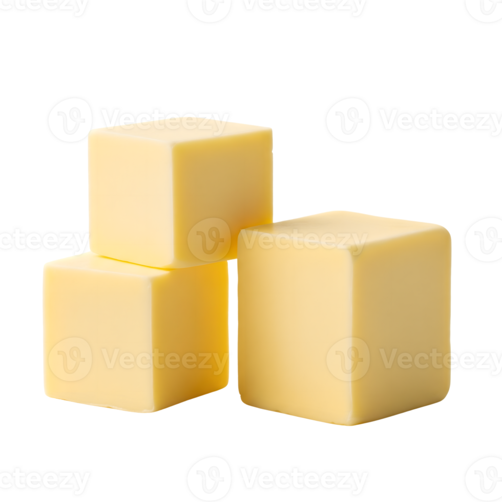 Three cubic butter blocks arranged on a stack isolated on transparent background Pro PNG