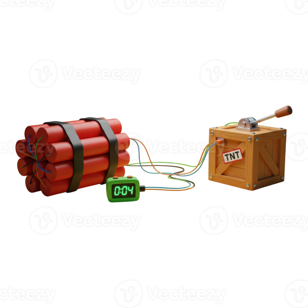 Dynamite sticks with timer and detonator switch isolated on transparent background Pro PNG
