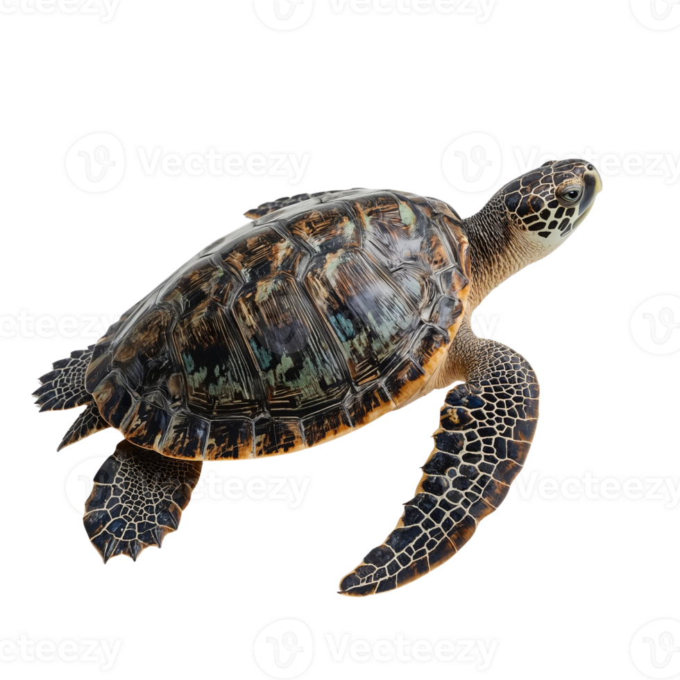 Majestic sea turtle with intricate shell patterns floating in digital space, on transparent setting Pro PNG