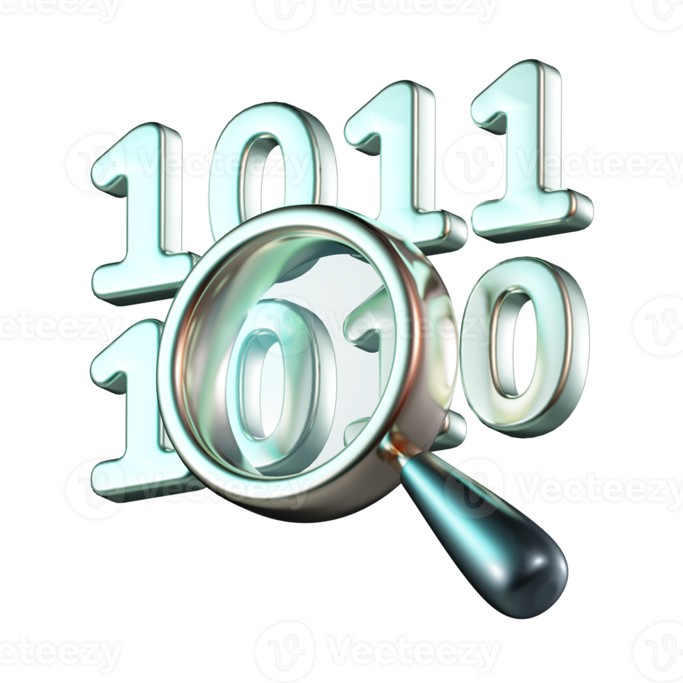 Magnifying Glass Scanning Binary Data Code 3D Icon Pro PNG