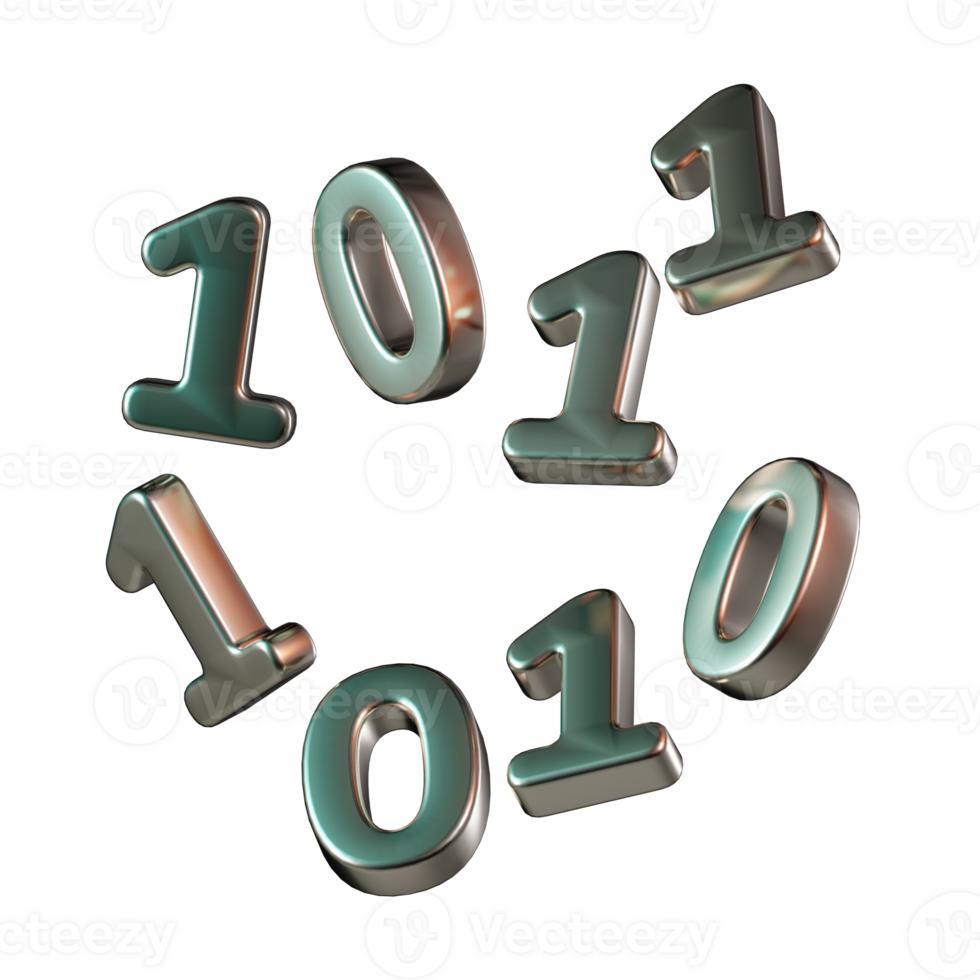 Teal and Chrome Floating Binary Digits 3D Icon Pro PNG