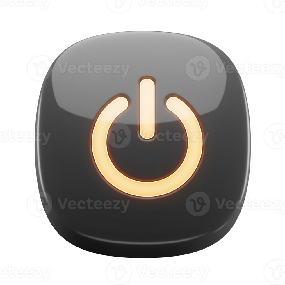 Power button icon illustration, glossy power symbol for website and mobile app design element on transparent background Pro PNG