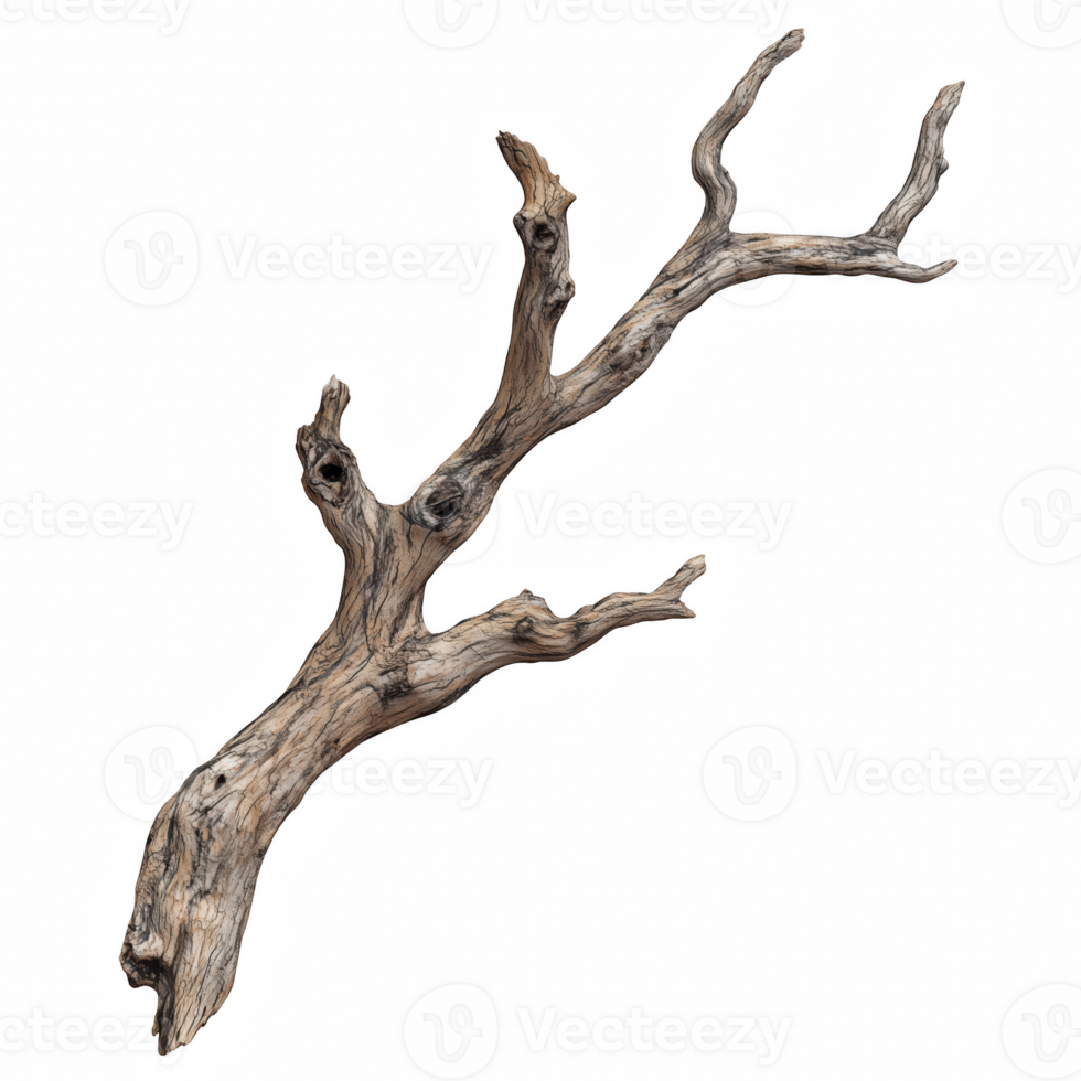 Old dry tree branch with rough bark texture and natural curved shape isolated on transparent background Pro PNG