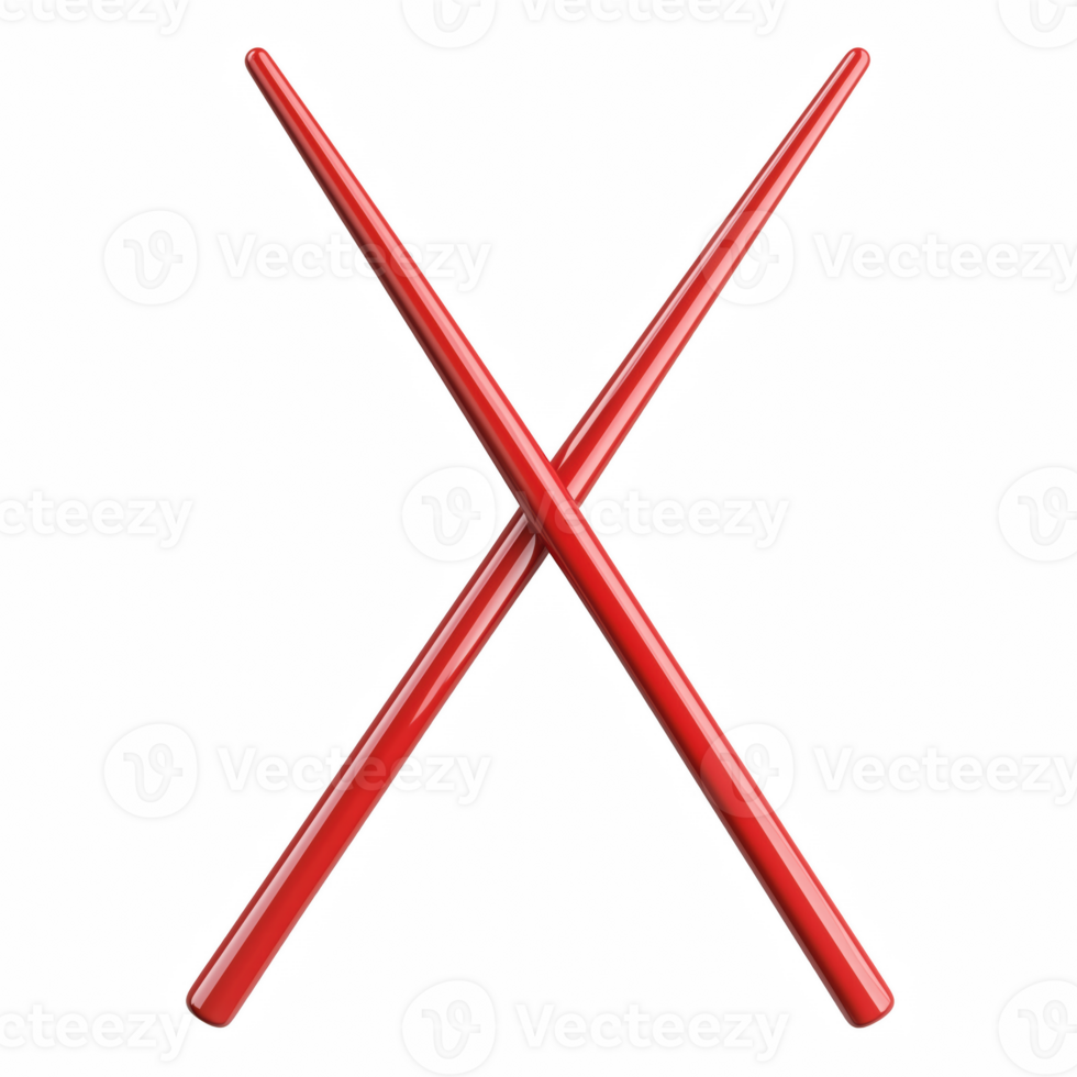 Red chopsticks crossed in X shape, glossy surface with smooth texture isolated on transparent background Pro PNG