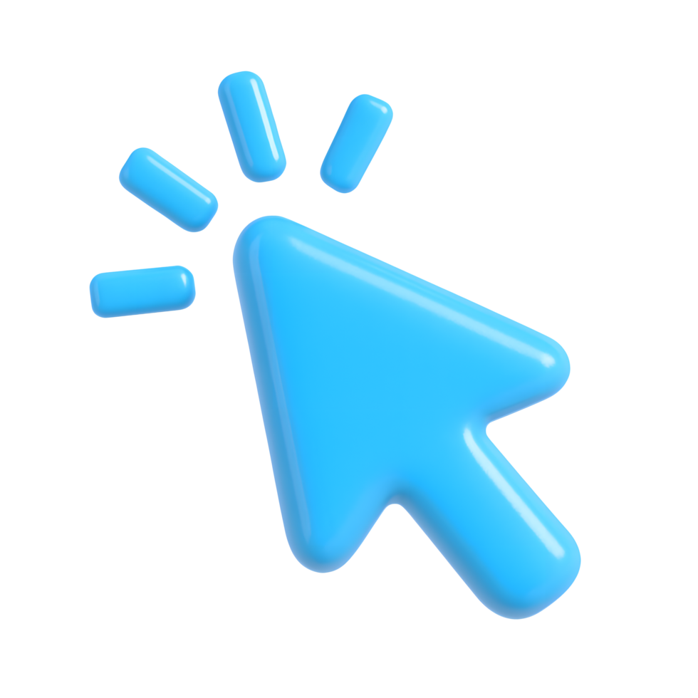3D blue cursor arrow icon, pointer with click effect, isolated on transparent background Free PNG