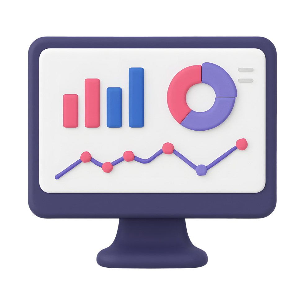 3D computer monitor, analytics charts and graphs, isolated on transparent background Free PNG