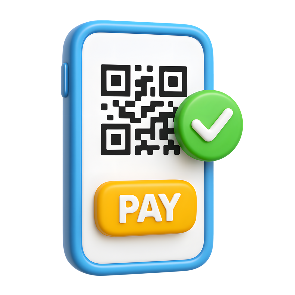 3D QR code payment icon with confirmation check mark and mobile interface, isolated on transparent background Free PNG