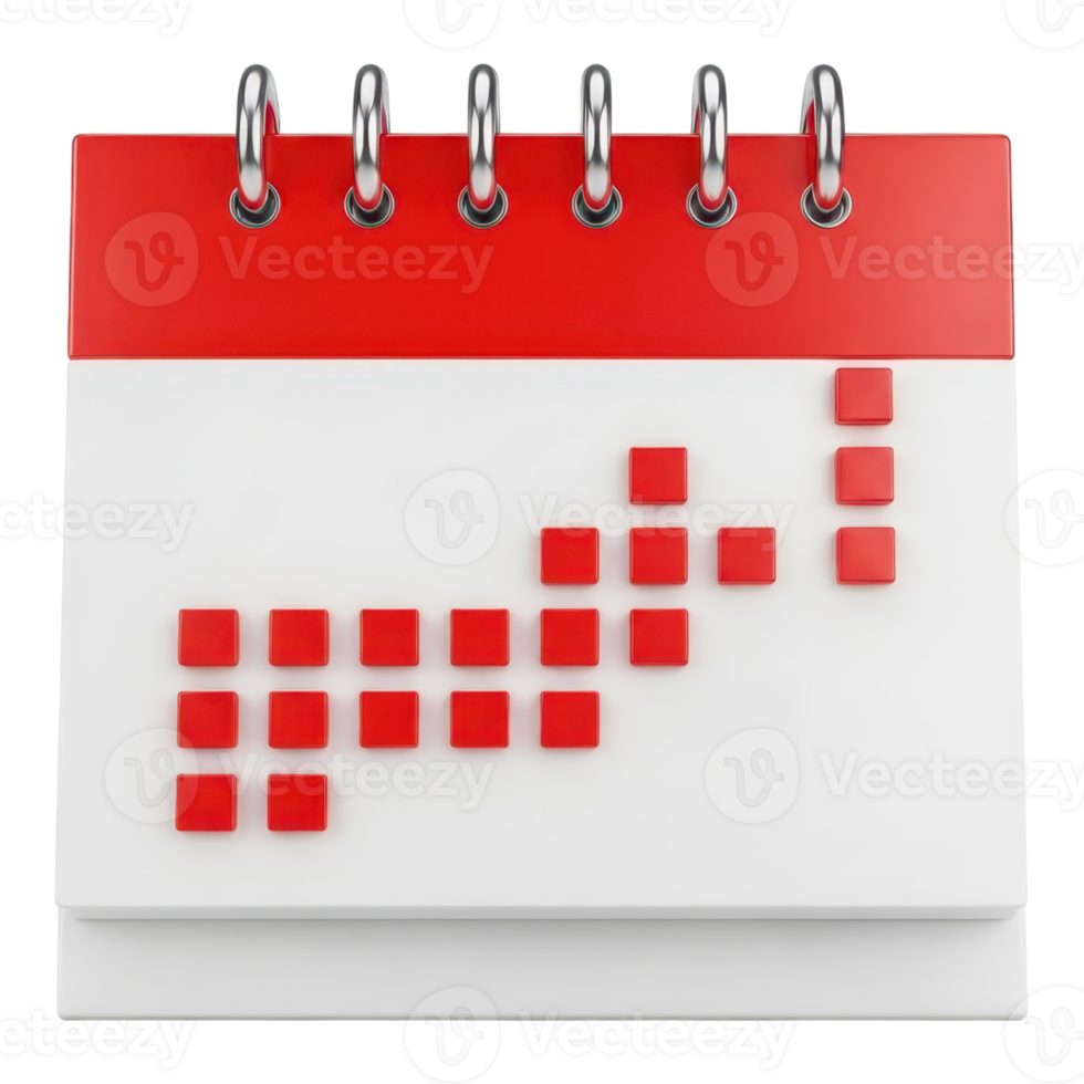 3d rendering of a calendar with a red graph isolated on transparent background Pro PNG