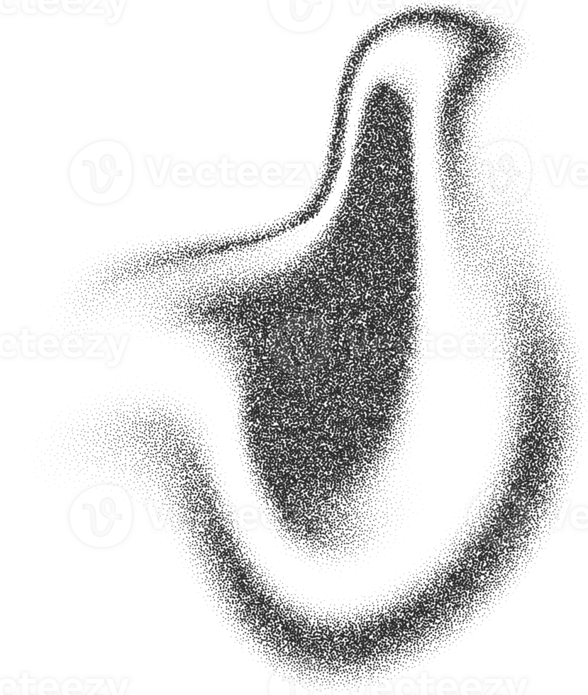 Grainy dotted gradient with pattern of noise texture. Wavy brushstroke with dust effect. Stipple splash and shadow. Fluid liquid halftone fade. Pro PNG