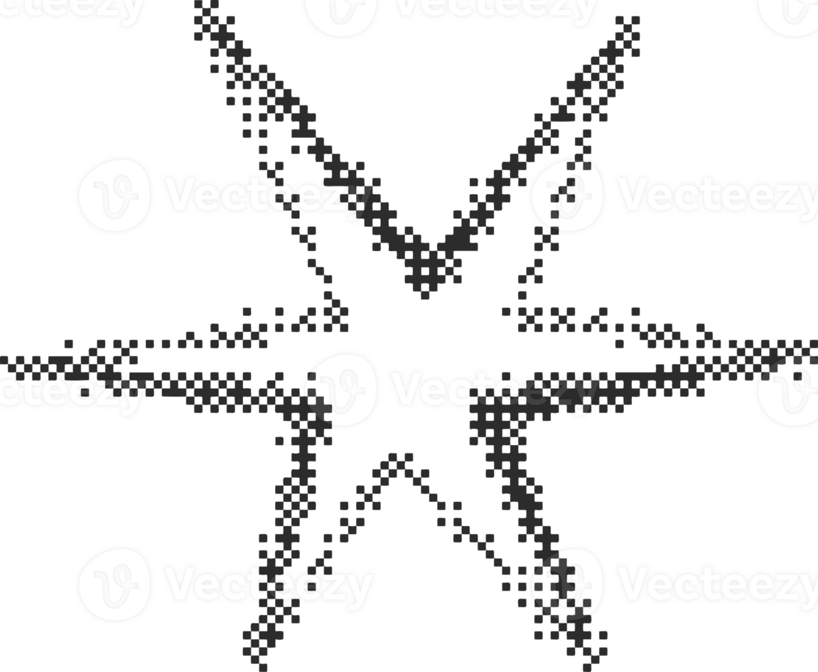 Irregular bitmap star shape. Abstract random spiky spark with geometric funky flashes and rays. Y2k retro sparkle. Pro PNG