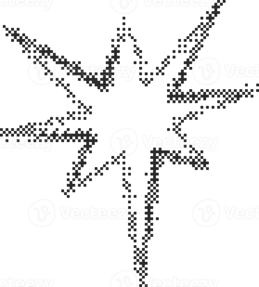 Irregular bitmap star shape. Abstract random spiky sparks with geometric funky flashes and rays. Y2k retro sparkle Pro PNG