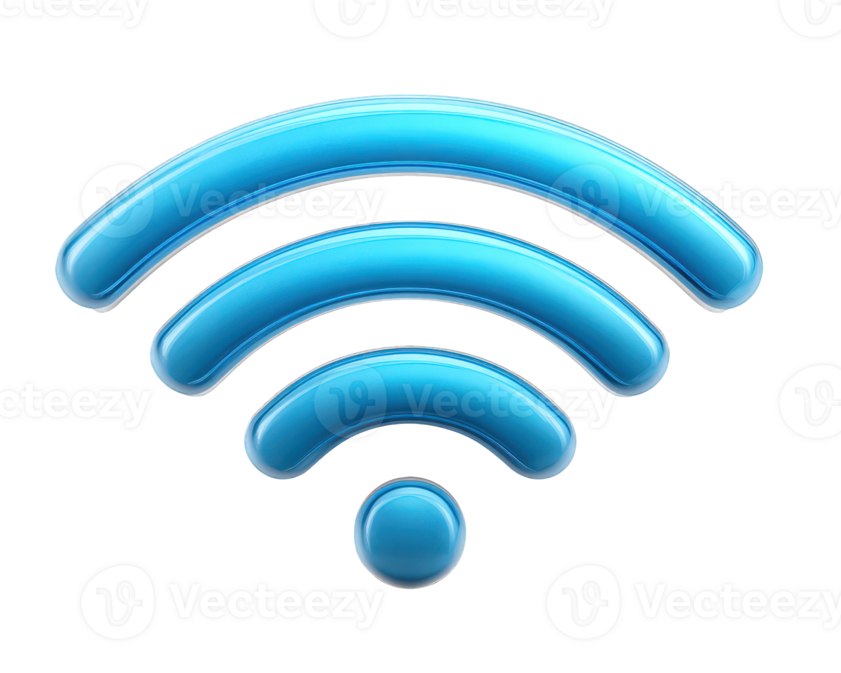 Blue 3d wi fi signal icon for technology and digital connection. glossy wireless symbol representing network, communication, and internet access for modern lifestyle Pro PNG