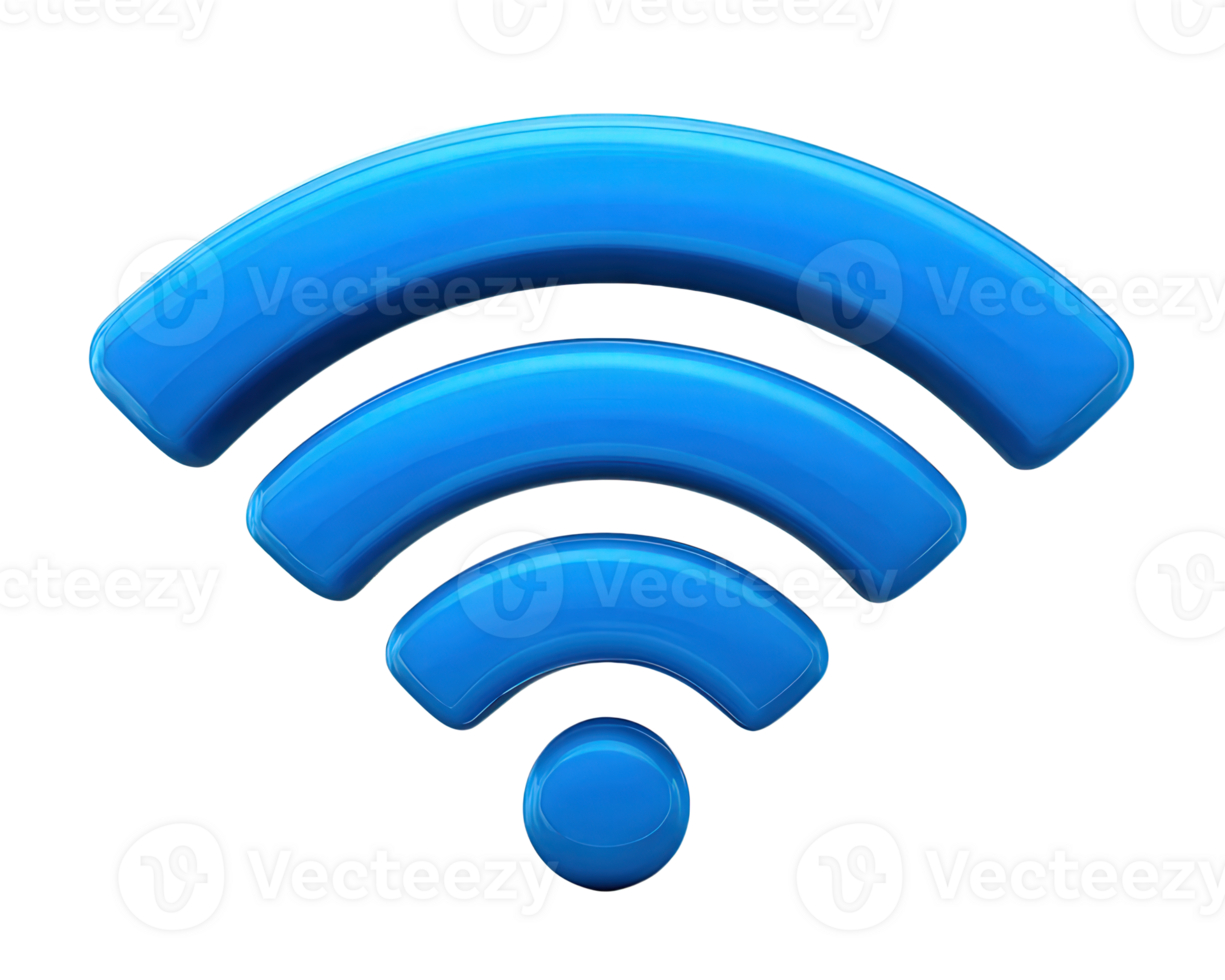 Blue wifi icon symbol for internet and technology connection. 3d rendering represents wireless signal, communication, and modern digital network on an isolated background Pro PNG
