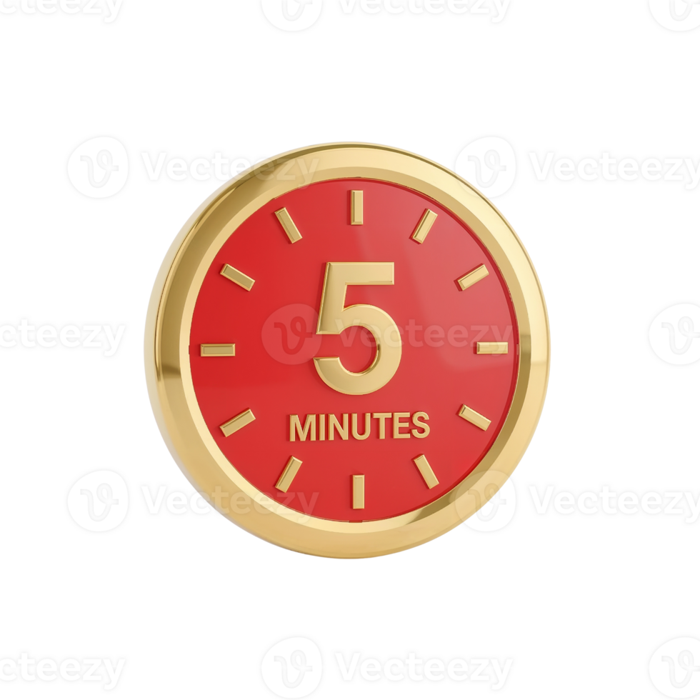 Five minutes countdown timer with golden frame, urgency and time management concept on isolated Pro PNG