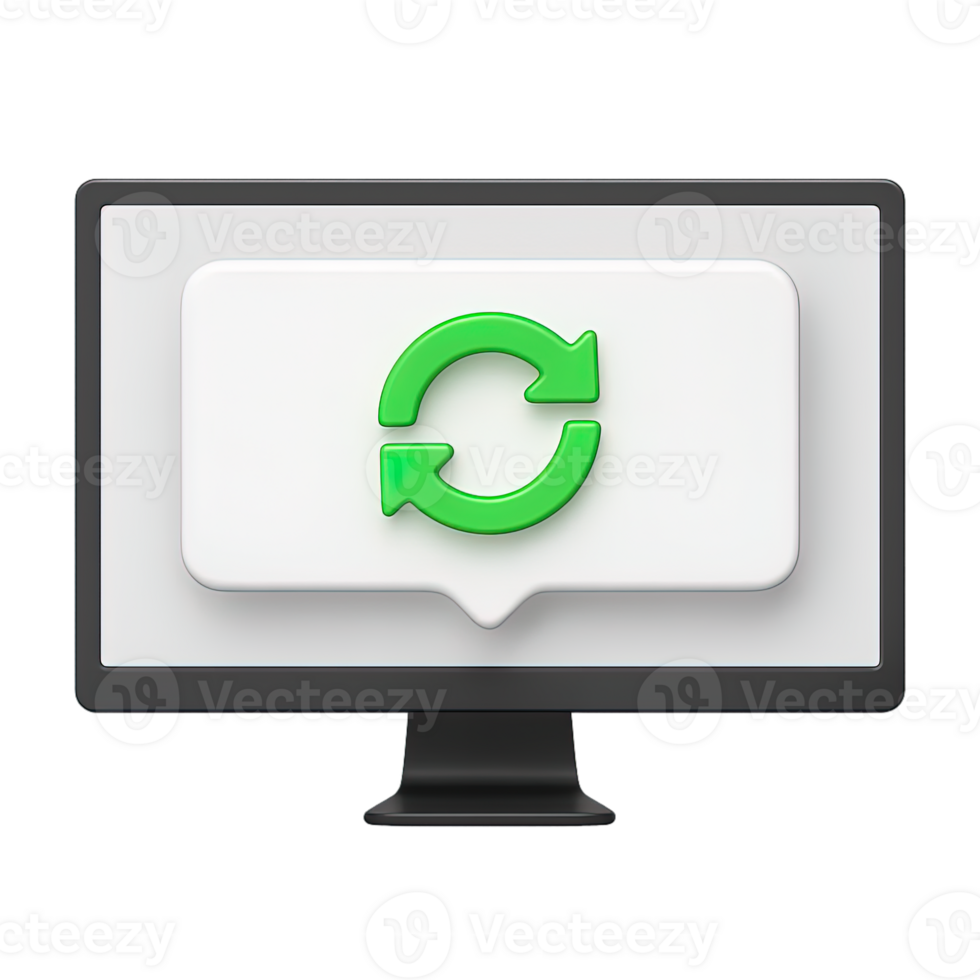 Computer Monitor Refresh Update Sync Icon 3D Illustration Dialog Box Screen Transparent Background Pro PNG