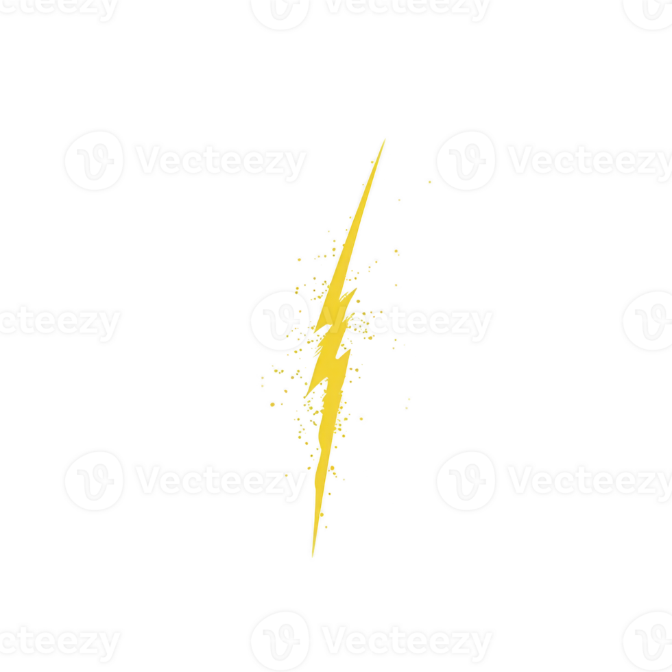 Vibrant yellow lightning bolt design with sparkling effect, set against transparency background, evokes energy and dynamism. This striking image can be used for various creative projects Pro PNG