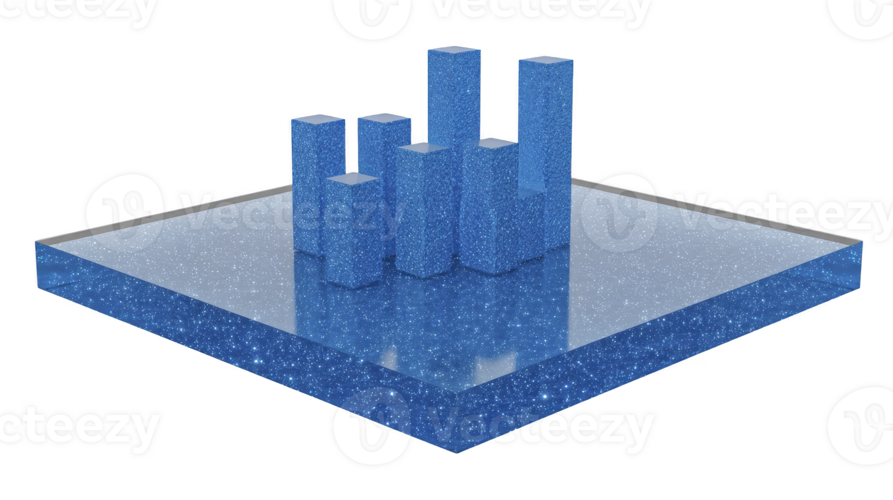 3D blue glitter bar chart on reflective surface, modern abstract data visualization with sparkling texture, creative business concept, futuristic and stylish design Pro PNG