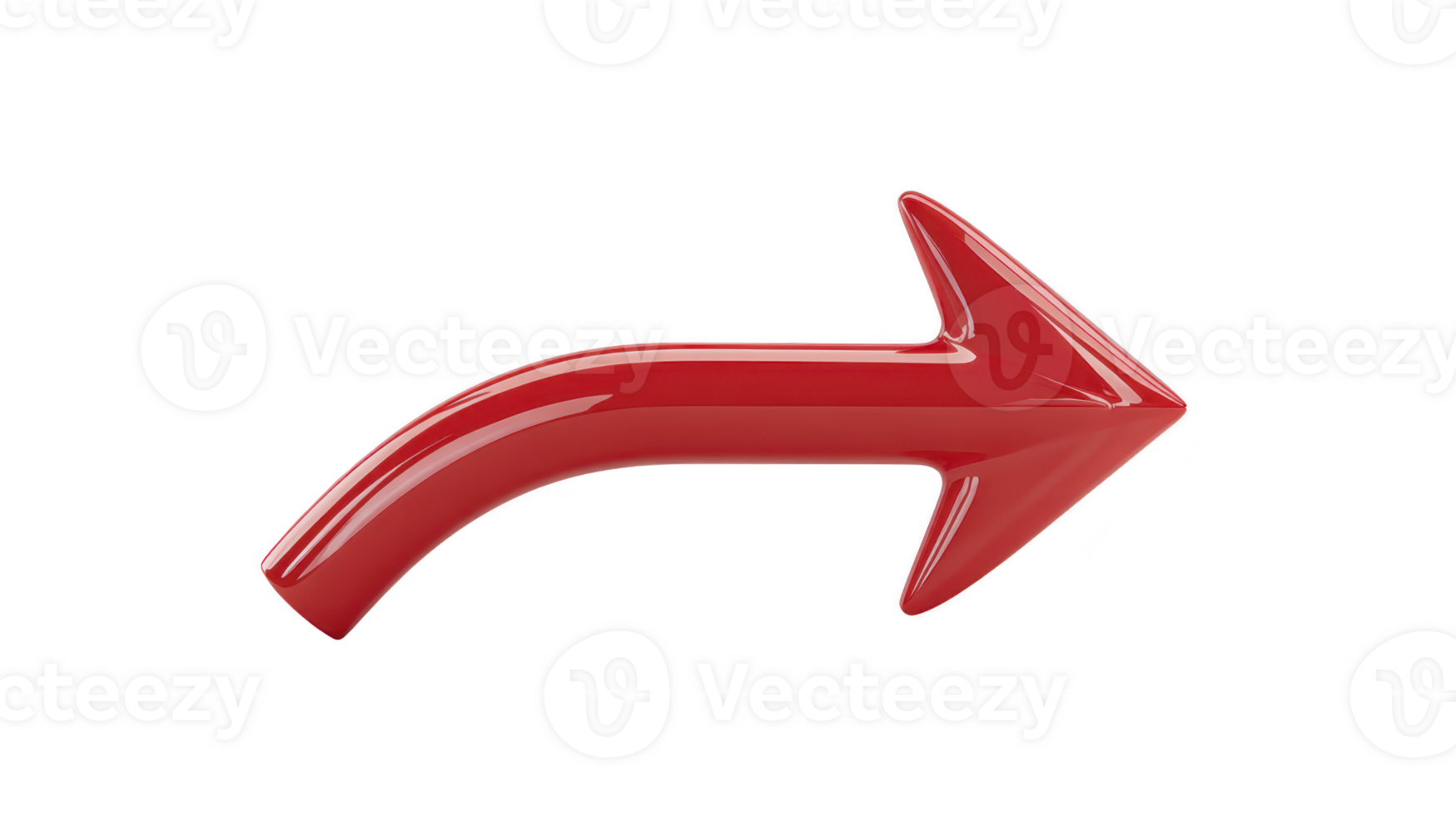 Red curved arrow glossy finish isolated on transparent background points right modern design 3D style symbol for direction navigation or movement energetic and dynamic Pro PNG