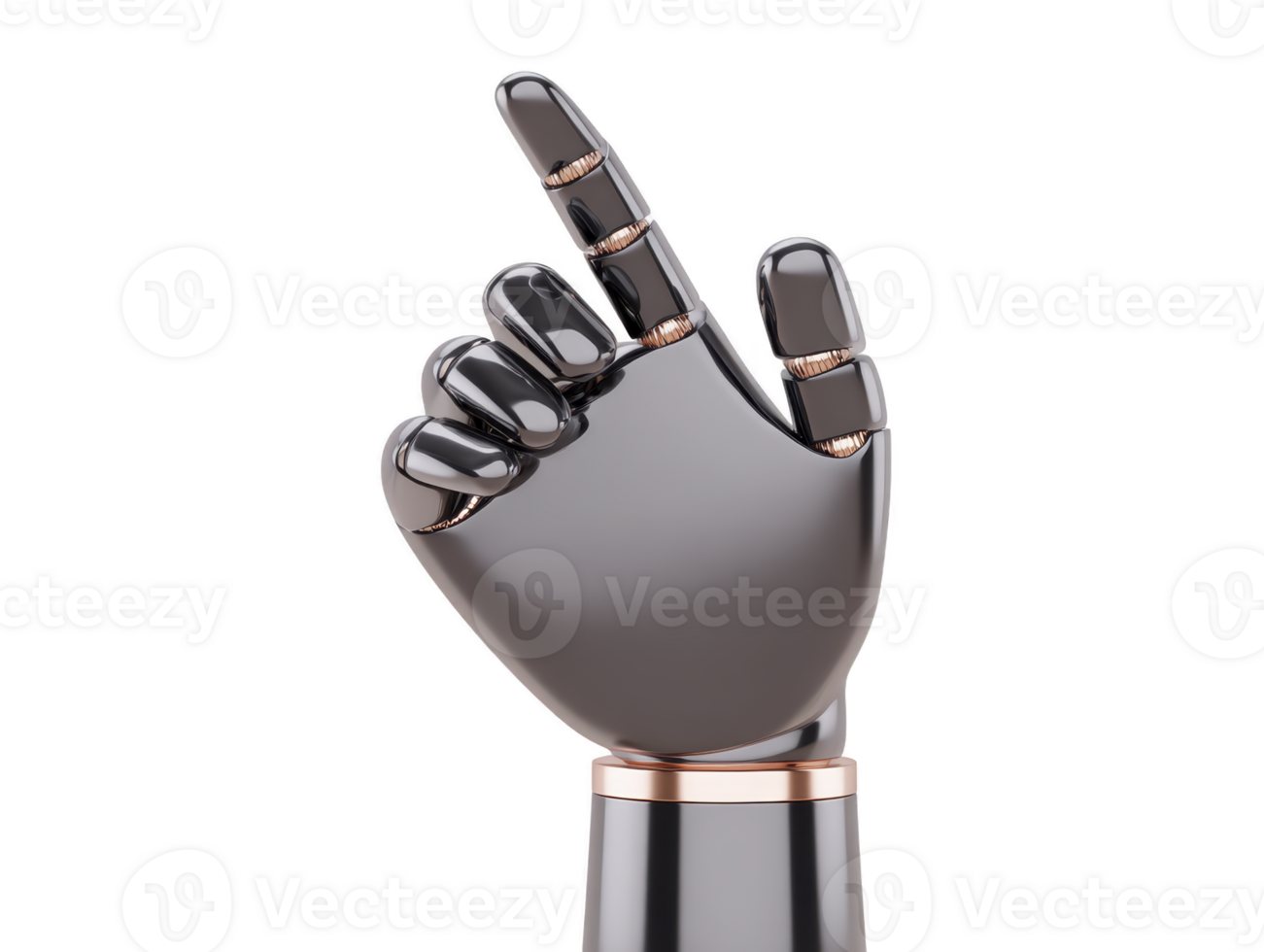 Robotic hand metallic futuristic pointing upward isolated on transparency background artificial intelligence technology innovation modern sleek design Pro PNG