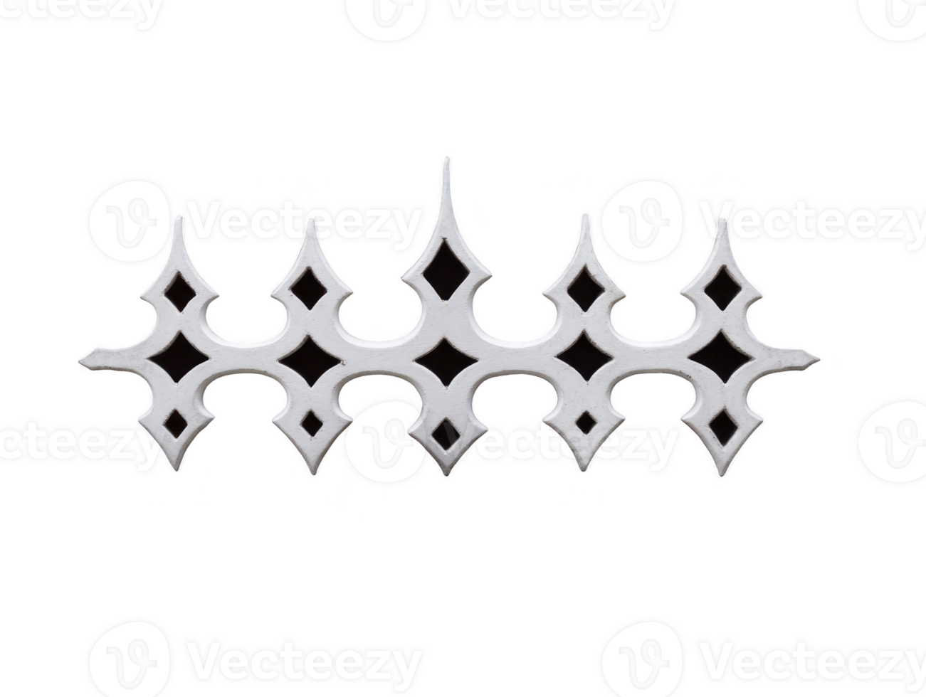 Geometric silver pattern, symmetrical metal ornament, abstract spiked design, modern decorative element, sharp pointed shapes, elegant and stylish, isolated on transparency background Pro PNG