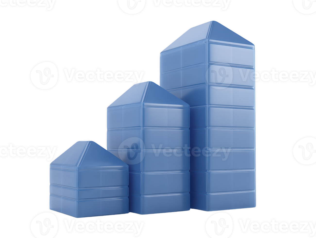 Blue geometric building blocks, three stacked shapes, modern minimal style, isolated on transparency background, symbolizing growth and progress Pro PNG