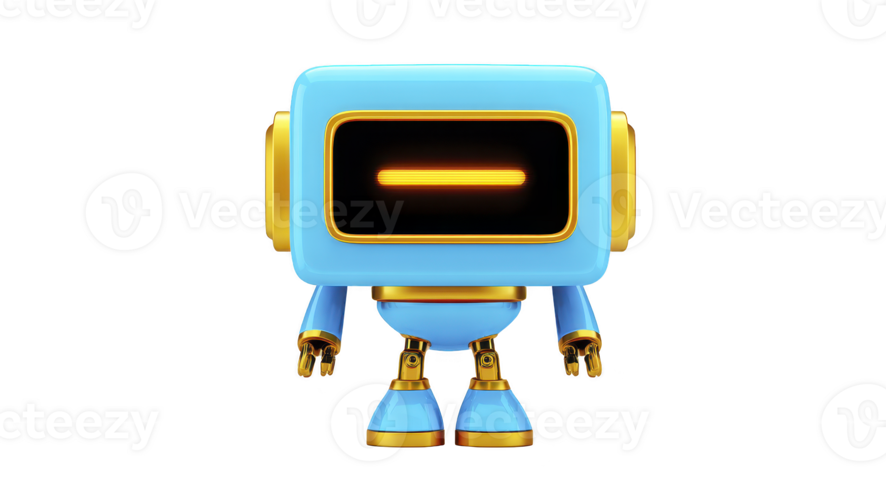 Blue robot character with gold accents, rectangular head, and simple design, standing on transparency background, evokes playful and futuristic mood, suitable for technology or education themes Pro PNG