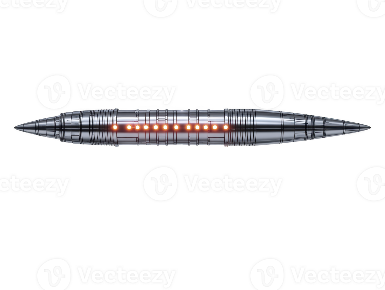 Futuristic metallic device with glowing orange lights and pointed ends, showcasing sleek and modern design with intricate patterns and reflective surface Pro PNG