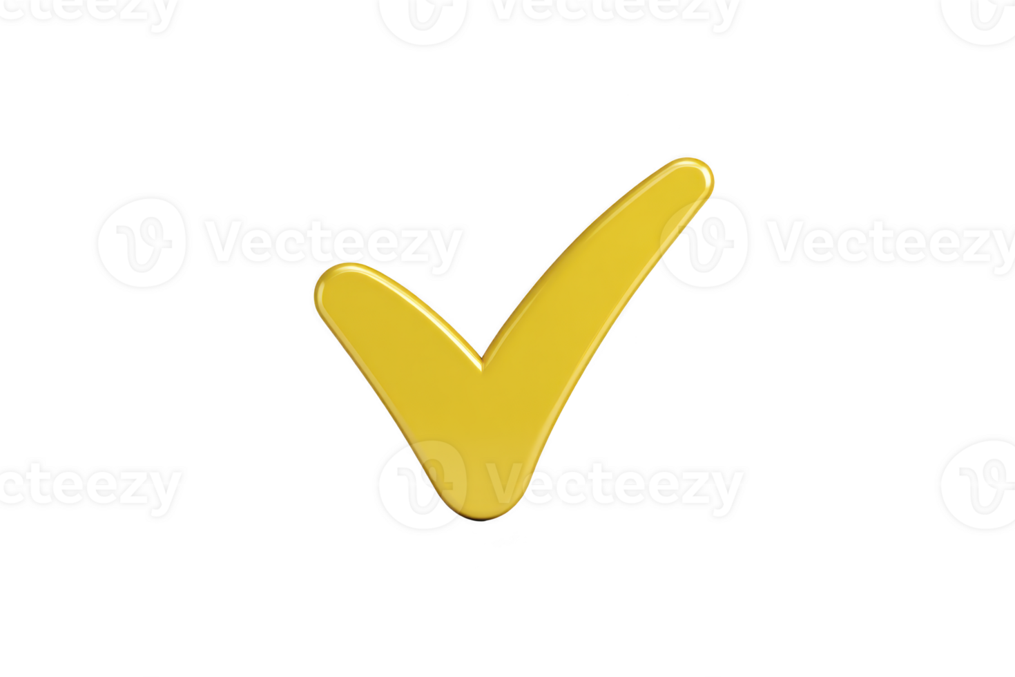 Yellow check mark 3D style isolated on transparency background symbolizing approval success or completion with glossy and modern appearance conveying positivity and achievement Pro PNG