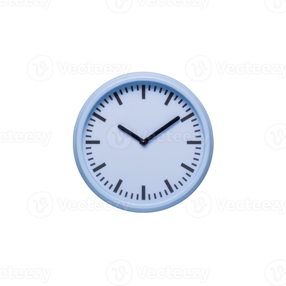 Blue wall clock with minimalist design, black hour and minute hands, and simple tick marks, isolated on transparency background, modern and clean style, time concept, calm and neutral mood Pro PNG